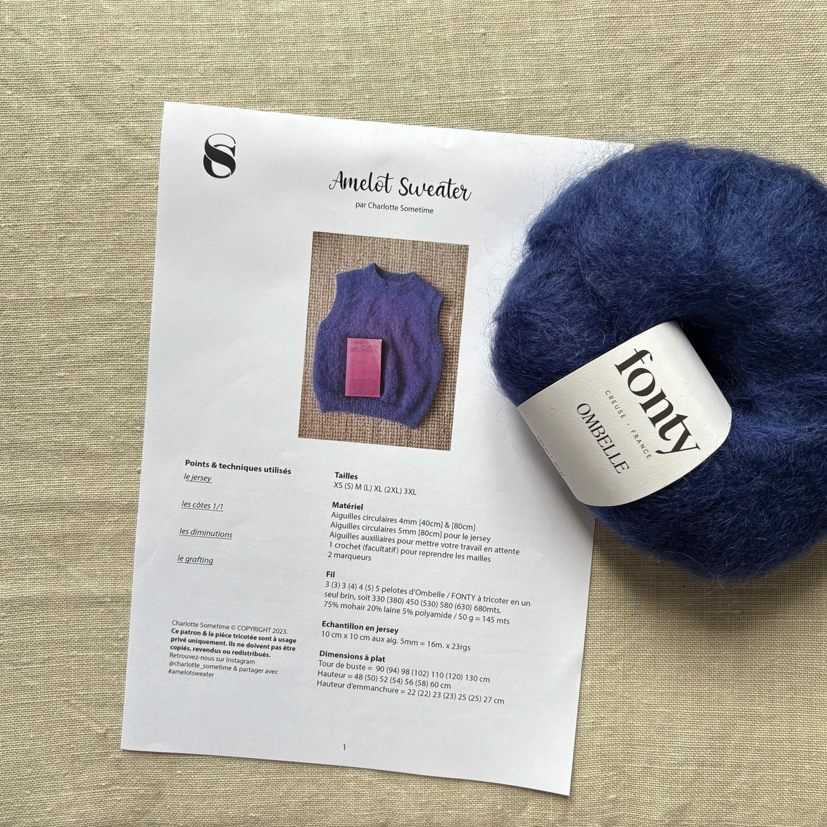 - Amelot Sweater, c'est le parfait petit pull sans manches, créé par Charlotte Sometime, à tricoter en Ombelle de Fonty